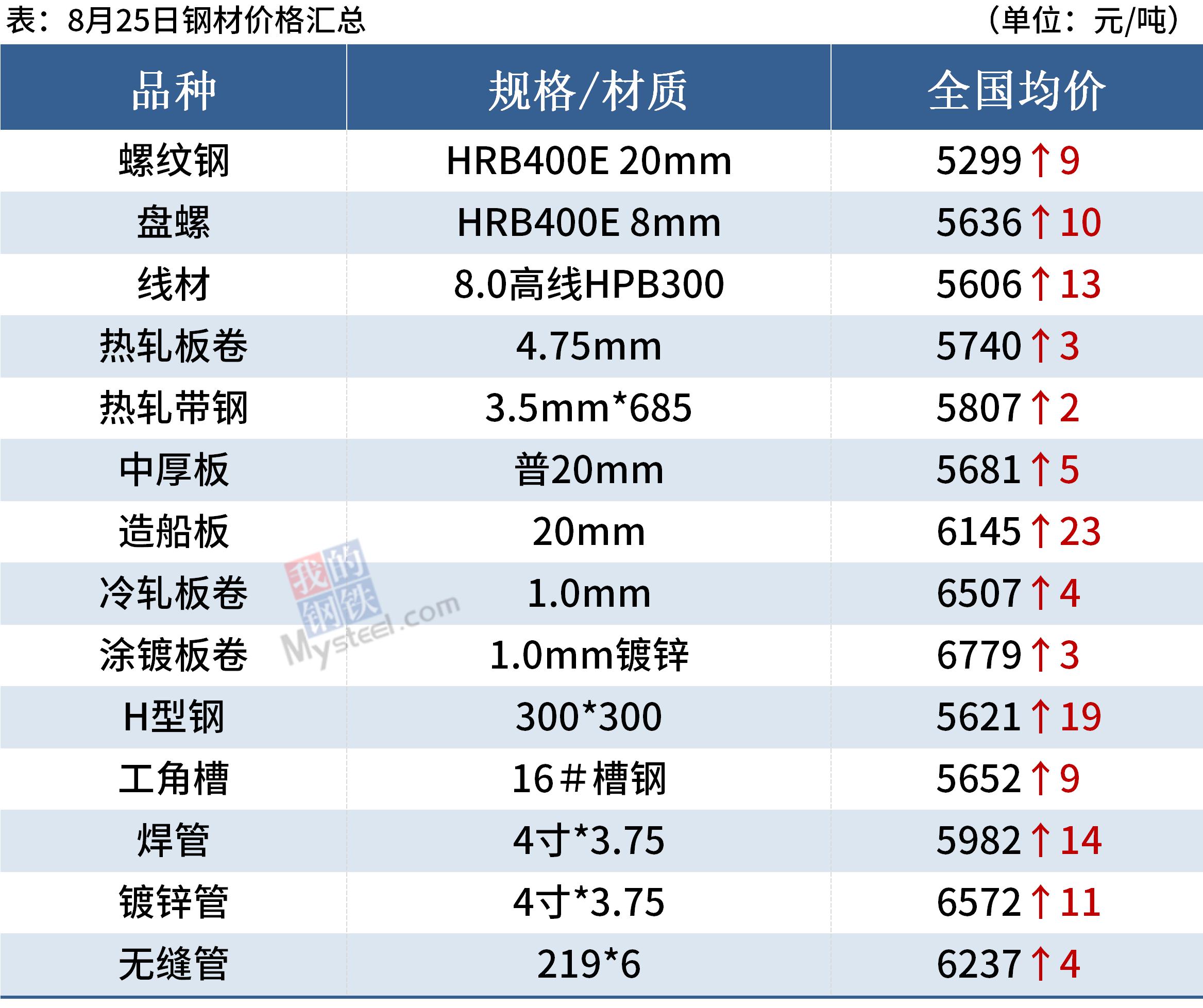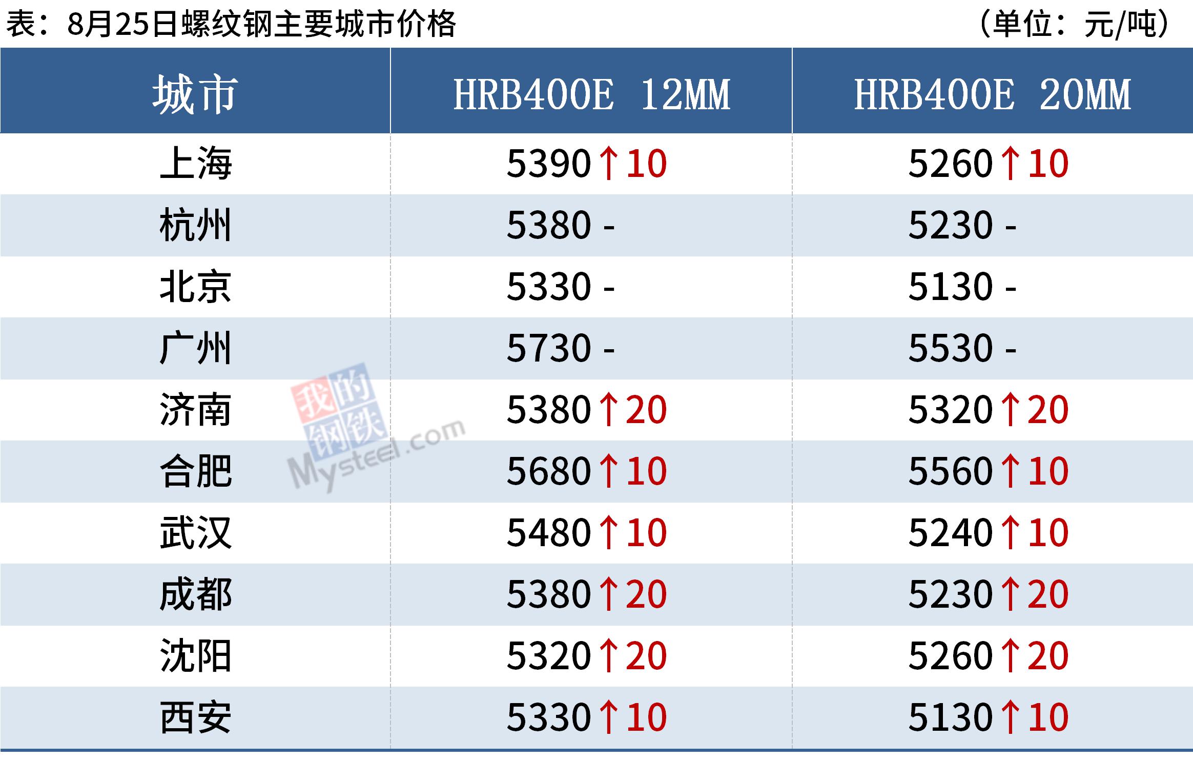 建筑鋼材:8月25日,全國31個主要城市20mm三級抗震螺紋鋼均價5299元/噸,較上個交易日上漲9元/噸。近期第二輪第四批中央生態(tài)環(huán)境保護督察全面啟動,加之限產(chǎn)效果逐步顯現(xiàn)對鋼材價格形成利好,但由于終端需求尚未正式啟動,高位成交不暢,市場觀望情緒較濃,價格持續(xù)上漲動力不足,預計26日全國建筑鋼材價格或將穩(wěn)中趨弱運行。