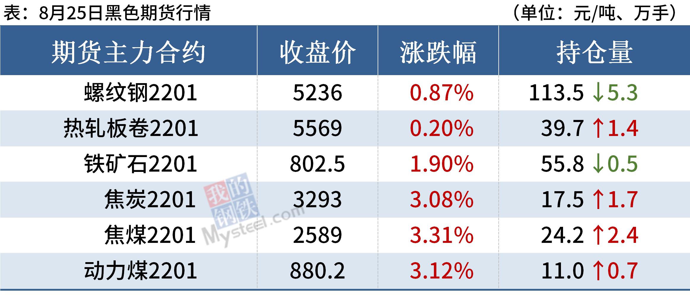 焦炭:8月25日,焦炭市場偏強運行,第六輪提漲已全面落地。本周焦炭產(chǎn)量微增,庫存小幅下降,焦企成本壓力加大,但目前企業(yè)無明顯限產(chǎn)計劃;下游鋼廠開工微降,同時焦炭庫存數(shù)量小幅下降,可用天數(shù)減少。總的看來,焦炭供需緊平衡。但焦炭六輪累漲720元/噸,并非由供需缺口導致,而是焦煤大幅上漲,焦企利潤受到擠壓,焦企由于鋼廠端對于焦炭需求仍在,選擇通過提漲而非限產(chǎn)來轉移成本端壓力。短期來看,由于環(huán)保、安全等原因,焦煤供應偏少的問題無法真正解決,成本端對焦炭價格的支撐將持續(xù);而鋼廠方面,近期鋼材供需兩旺,作為原料的鐵礦石價格下跌也給了鋼廠較高的利潤空間,鋼廠權衡之下選擇接受焦炭漲價以避免焦企減產(chǎn),影響自身生產(chǎn),符合其自身利益。但如今焦炭累計已提漲720元,鋼廠的邊際利潤正在降低,留給焦化廠的漲價空間已經(jīng)不多,當鋼廠的邊際利潤降到一定程度,就會自主限產(chǎn)來降低焦炭需求,穩(wěn)定焦價。