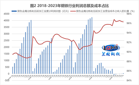 從全國粗鋼產量及噸鋼利潤的數據來看,國內鋼鐵生產企業利潤空間呈現持續改善的態勢(詳見圖1),綜合成本展現出了頂部下滑的態勢(詳見圖2),由于鋼材價格的震蕩反彈與原料價格的相對韌性,使得鋼企的盈利得到了持續的改善(詳見圖3),但鋼鐵生產企業依然面臨著成本相對韌性與需求結構調整的雙重壓制。