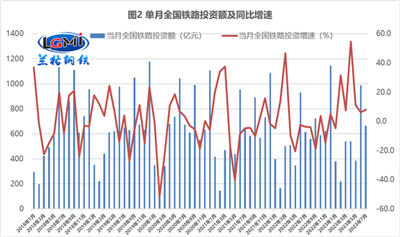 隨著重點(diǎn)鐵路項(xiàng)目開標(biāo)與中標(biāo)消息不斷,“鐵老大”正逐漸回歸穩(wěn)增長的正軌。據(jù)蘭格鋼鐵研究中心測算,7月鐵路固定資產(chǎn)投資完成664億元,同比增長8.0%,增速環(huán)比擴(kuò)大了1.8個(gè)百分點(diǎn)(詳見圖2);就單月投資額來看,雖然較6月環(huán)比減少324億元,但依舊維持在了年內(nèi)單月第二的位置,這表明了鐵路投資領(lǐng)域正在回歸成為穩(wěn)增長的“主力軍”。由于目前交通投資領(lǐng)域面臨著“公路水路后勁不足、鐵路項(xiàng)目漸成主力”的現(xiàn)狀,這將對于交通領(lǐng)域“鋼需”釋放形成明顯的穩(wěn)定作用。