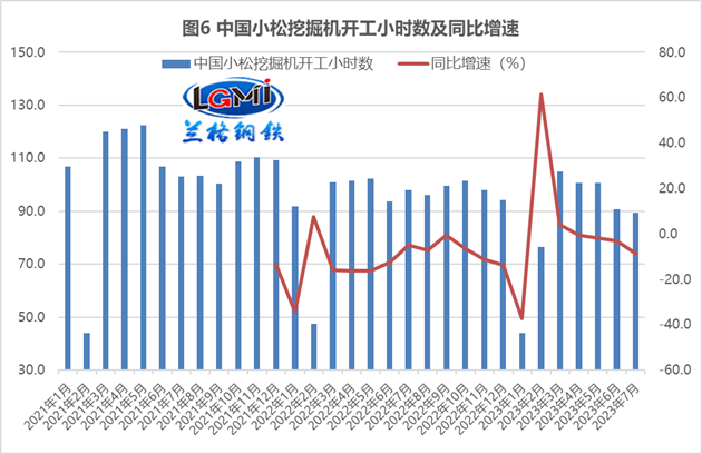 雖然今年以來,各地重大項(xiàng)目開工不斷,但實(shí)際項(xiàng)目施工的進(jìn)度卻不盡如人意,據(jù)小松官網(wǎng)公布數(shù)據(jù)顯示,7月中國小松挖掘機(jī)開工小時(shí)數(shù)為89.4小時(shí),同比下降8.7%,連續(xù)4個(gè)月同比負(fù)增長;從環(huán)比數(shù)據(jù)來看,呈現(xiàn)了連續(xù)3個(gè)月環(huán)比下降態(tài)勢。從季度數(shù)據(jù)來看,一季度中國小松挖掘機(jī)平均開工小時(shí)數(shù)為75.1小時(shí),低于去年同期5.0個(gè)百分點(diǎn);二季度中國小松挖掘機(jī)平均開工小時(shí)數(shù)為97.4小時(shí),較一季度上升22.3個(gè)百分點(diǎn),但依然低于去年同期1.7個(gè)百分點(diǎn);因此上半年中國小松挖掘機(jī)平均開工小時(shí)數(shù)為86.3小時(shí),低于去年同期3.3個(gè)百分點(diǎn),較去年全年的均值(93.8)低7.5個(gè)百分點(diǎn)(詳見圖6)。這表明各地重點(diǎn)項(xiàng)目呈現(xiàn)了“開工多”但“施工緩”的特點(diǎn),這主要是由于受制于項(xiàng)目資金到位情況,整體項(xiàng)目施工的進(jìn)度較為緩慢。