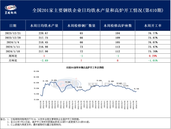 蘭格調研:全國201家生產企業高爐開工數據周報