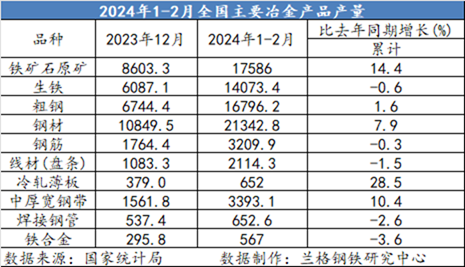 表2?2024年1-2月全國鋼鐵下游工業產品產量