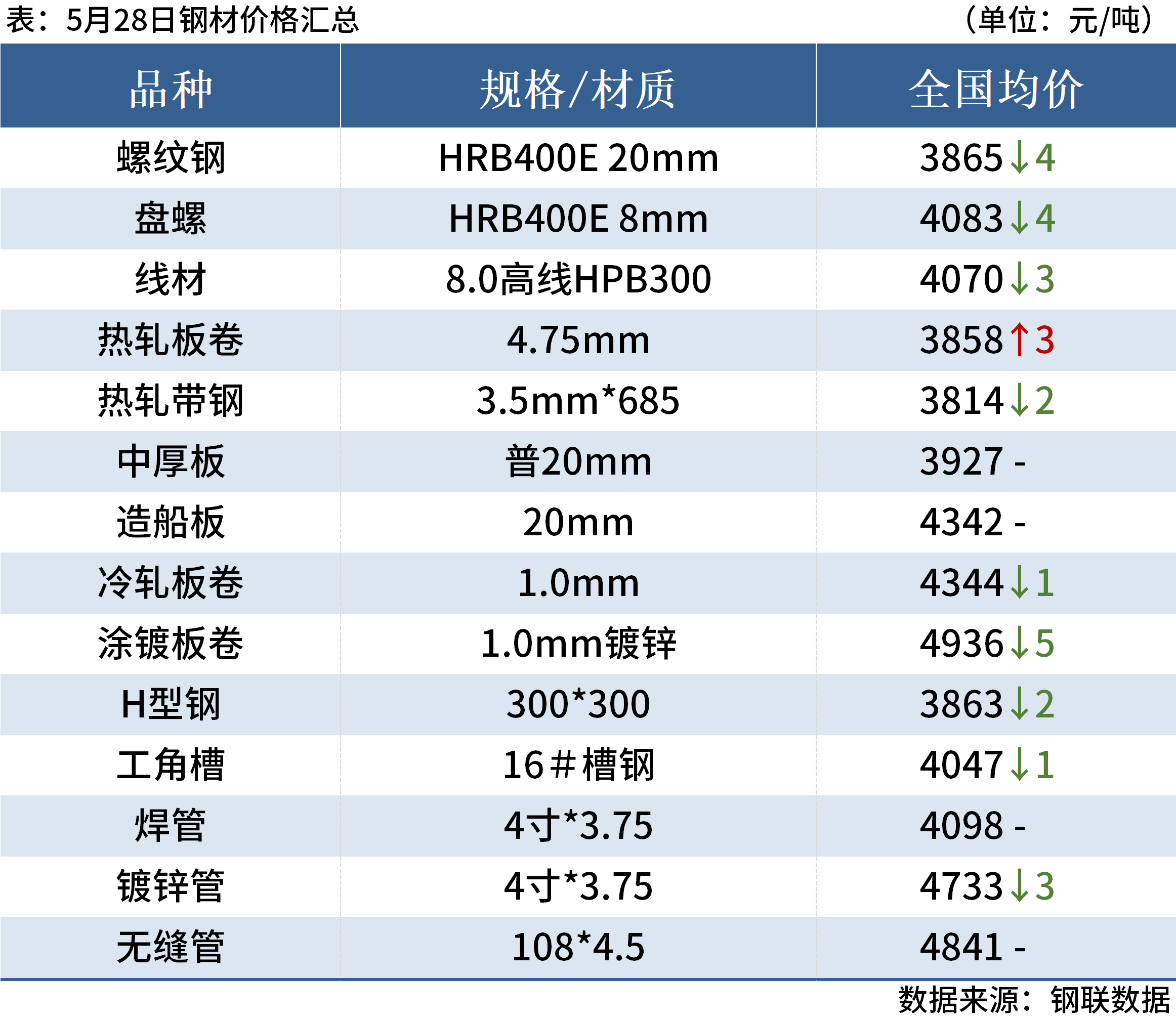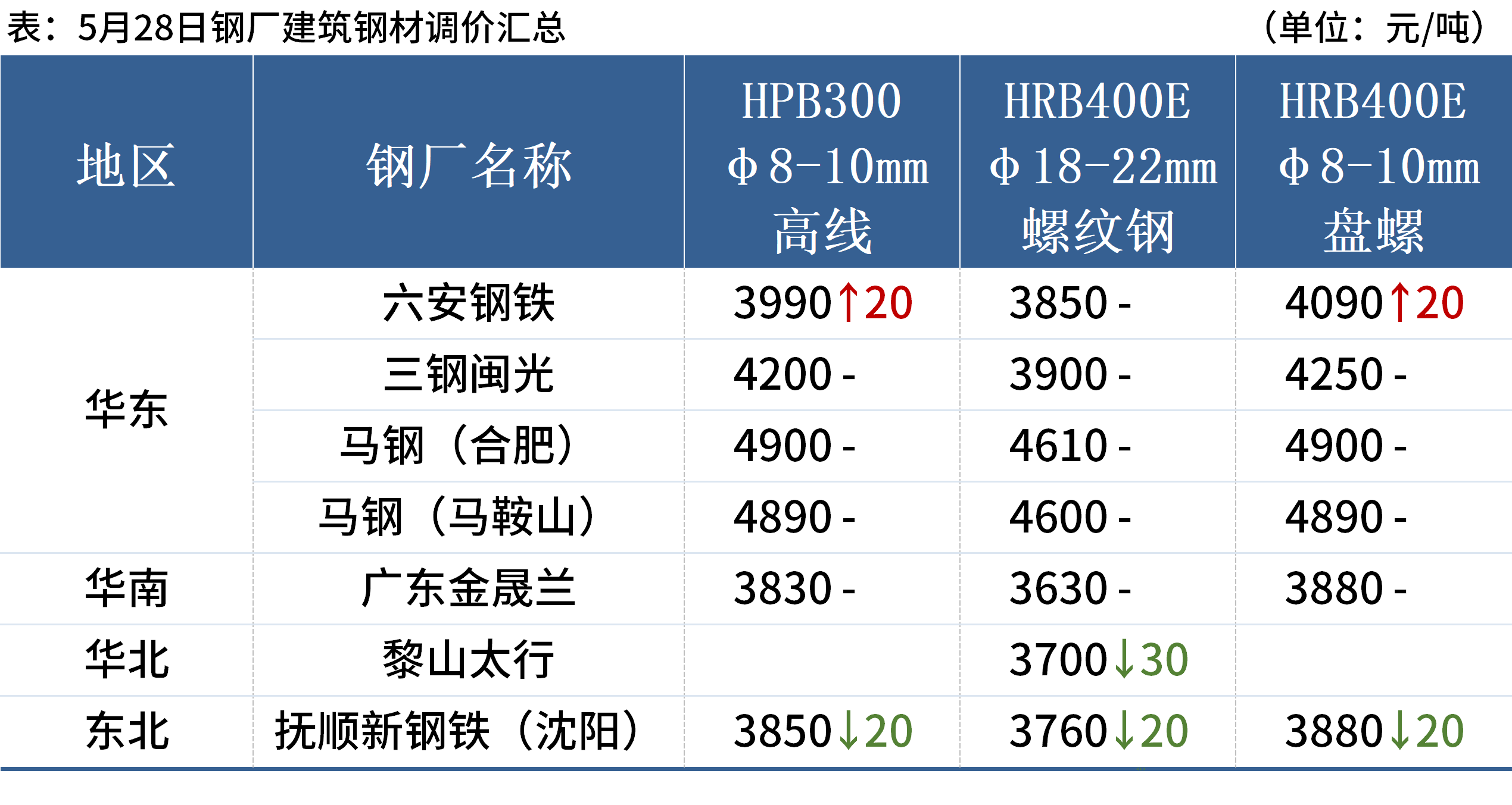 5月28日,2家鋼廠下調建筑鋼材出廠價20—30元/噸,1家鋼廠上調出廠價20元/噸。