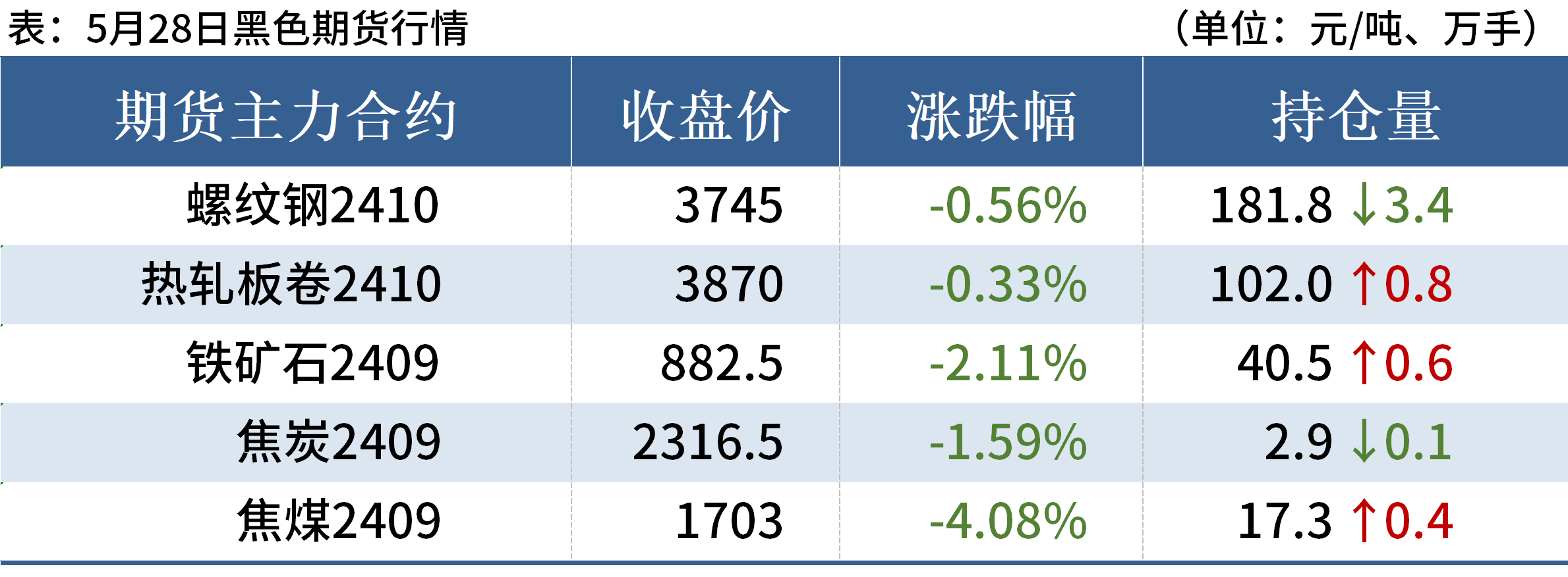 鐵礦石:5月28日,山東港口進口鐵礦主流品種價格較上一工作日偏弱運行,累計下跌5-10。賣盤方面,區域內貿易商報價積極性一般,截至目前現貨市場成交以PB粉為主;山東遠月市場詢報情緒一般,暫無成交;買盤方面,區域內鋼廠詢盤較為謹慎,維持低庫存運行。目前PB粉主流在872-875;卡粉主流在1035-1040;超特粉主流在720-725。