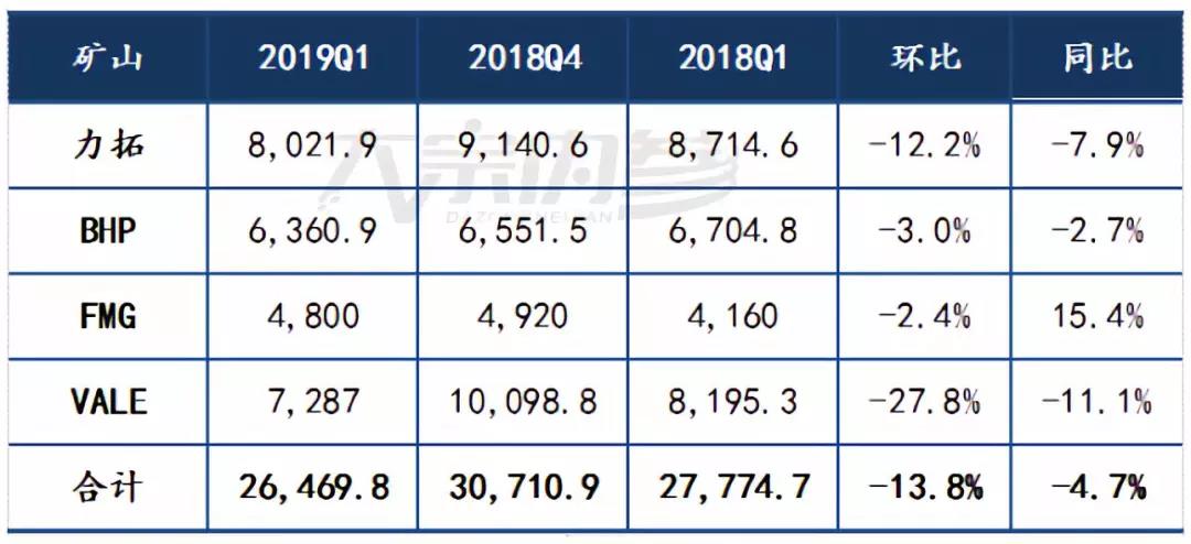 四大礦山鐵礦石生產計劃及2019年2季度預測(單位:萬噸)