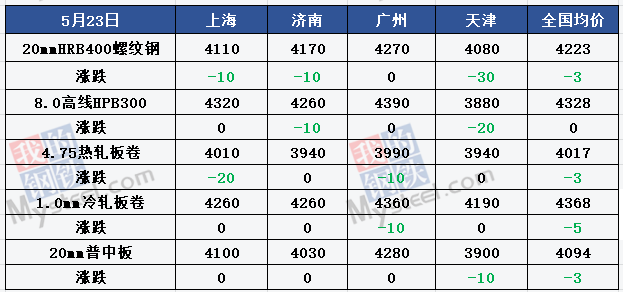 建材成交量:5月23日,Mysteel全國貿易商建材日成交量17.05萬噸,較5月22日減少1.47萬噸。