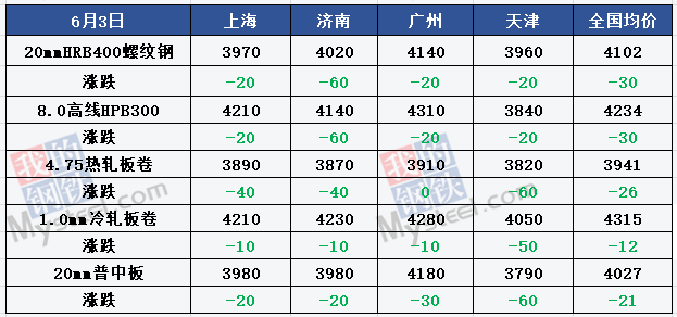 沙鋼調價:6月1日,沙鋼出臺調價政策,建材價格持穩,優線下調30-50元。