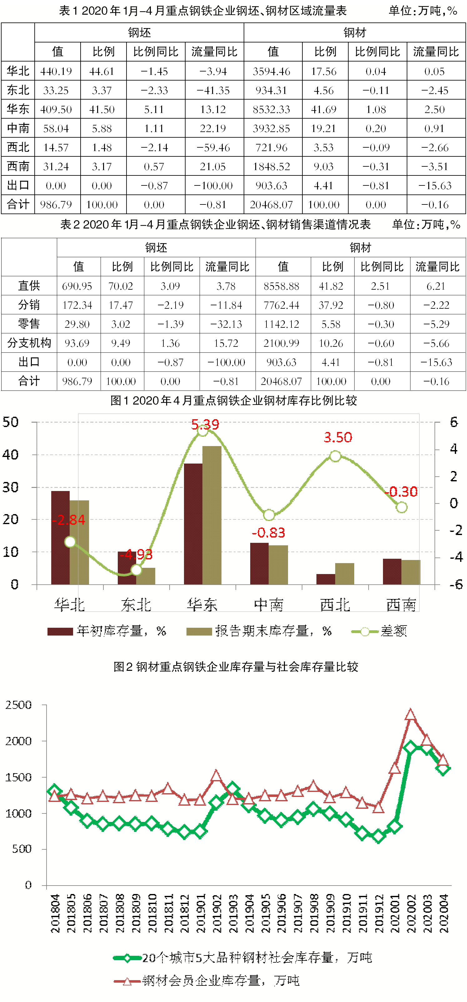4月末,華北、東北、中南和西南地區(qū)鋼材庫存量占重點(diǎn)鋼鐵企業(yè)庫存量的比例,低于今年初庫存量占重點(diǎn)鋼鐵企業(yè)庫存量的比例,分別減少了2.84個(gè)、4.93個(gè)、0.83個(gè)、0.30個(gè)百分點(diǎn);華東和西北地區(qū)鋼材庫存量占重點(diǎn)鋼鐵企業(yè)庫存量的比例,高于今年初庫存量占重點(diǎn)鋼鐵企業(yè)庫存量的比例,分別提高了5.39個(gè)、3.50個(gè)百分點(diǎn)。